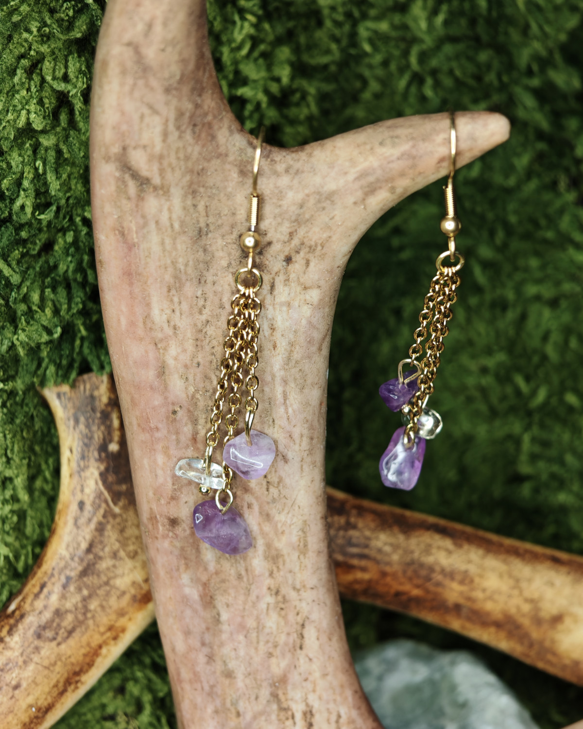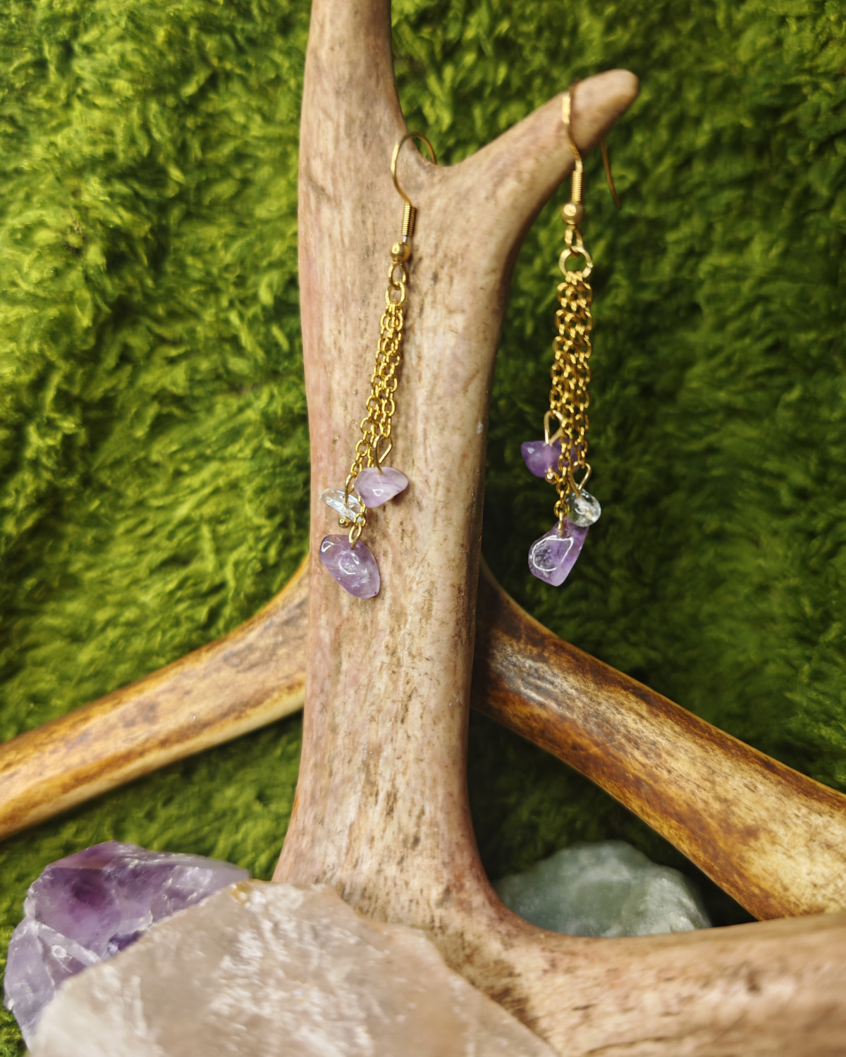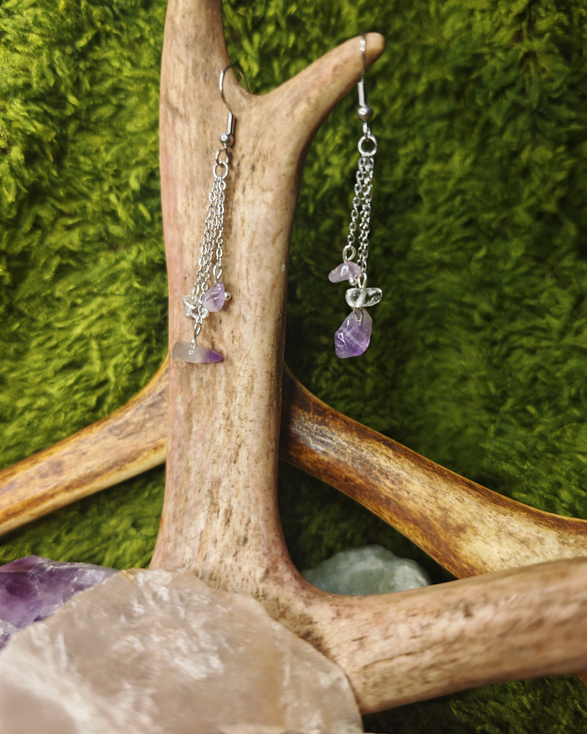 Ametisti: Ametisti on rauhan ja henkisen suojan kivi. Sen violetti hohde puhdistaa mieltä ja sydäntä, vahvistaen yhteyttä korkeampaan tietoisuuteen ja ohjaten kulkijaa kohti sisäistä tasapainoa ja selkeyttä.